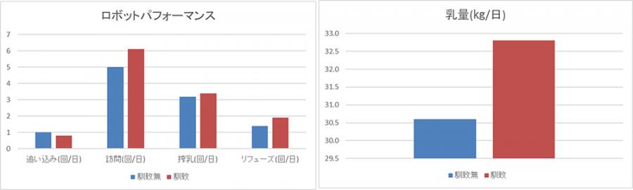 実際に、初妊牛が分娩する前にロボットへ馴致させた後の産乳成績などを調査した報告(J.E.Brasierら(2025))では、初回搾乳時の搾乳ロボットへの誘導し易さ、分娩後21日間のロボットパフォーマンスや生産乳量の改善が確認されていました。